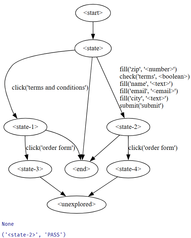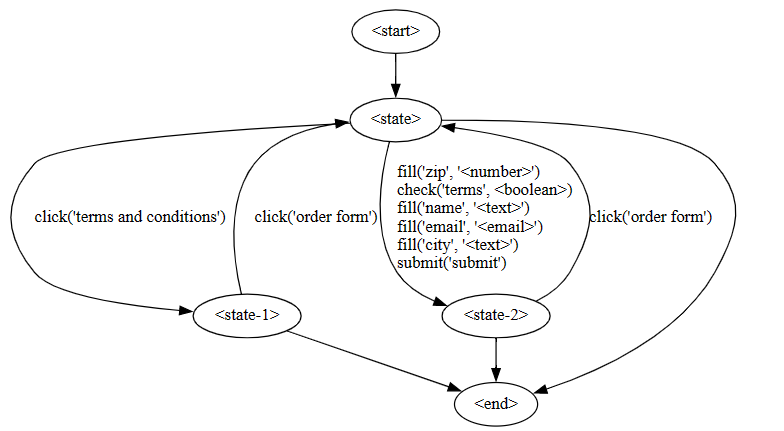 In new state <state-2> frozenset({"click('order form')"})