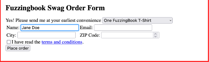 Running the fuzzer again and again will eventually cover these expansions too, leading to letter and digit coverage within the order form.