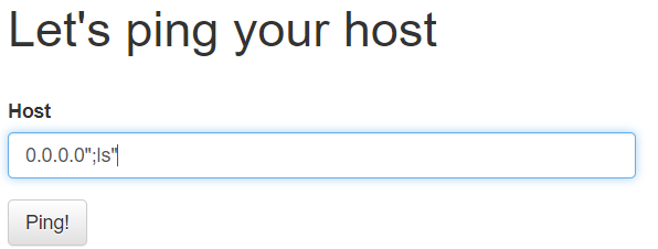 해당 APP은 0.0.0.0 호스에서 실행중이므로 해당 호스트로 ping명령어를 통해 injection 가능하다.