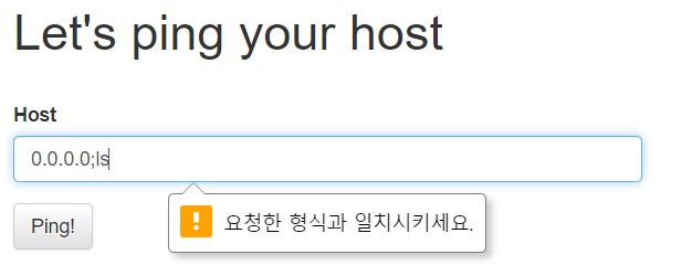 웹페이지에 접속하고 코드를 보았을 때, 1번과 동일한 문제인줄 알았다. 그래서 바아로 0.0.0.0;ls 를 입력했는데