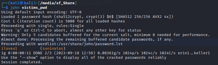 ($ john --wordlist=/usr/share/john/password.lst victims_pwd로 시도했으나 실패함ㅎ 왜죠)