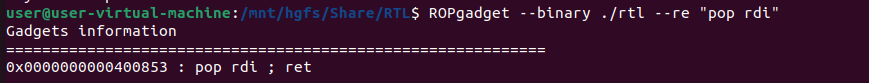 --re 정규표현식으로 가젯을 "pop rdi"로 필터링하여 ret find out