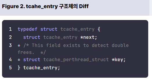 : 해제되는 청크의 key에 tcache(구조체 변수) 라는 값을 대입