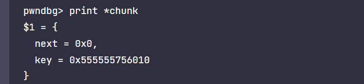 pwndbg > set $chunk=(tcache_entry *) 0x555555756250