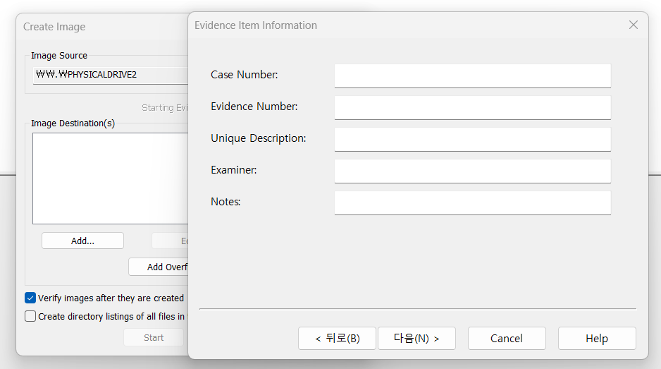 : 이미지 타입 (E01 : 압축된 타입) - destination 지정( image fragment size을 0으로 하면 쪼개서 저장하지 x)