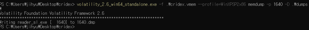: 찾기를 통해 의심스러운 process검색 - offset(헥사..?) 값을 복사 - $ volatility_2.6_win64_standalone.exe -f .\cridex.vmem --profile=WinXPSP2x86 dumpfiles -Q 0x00000000023ccf90 -D .\files\ -n