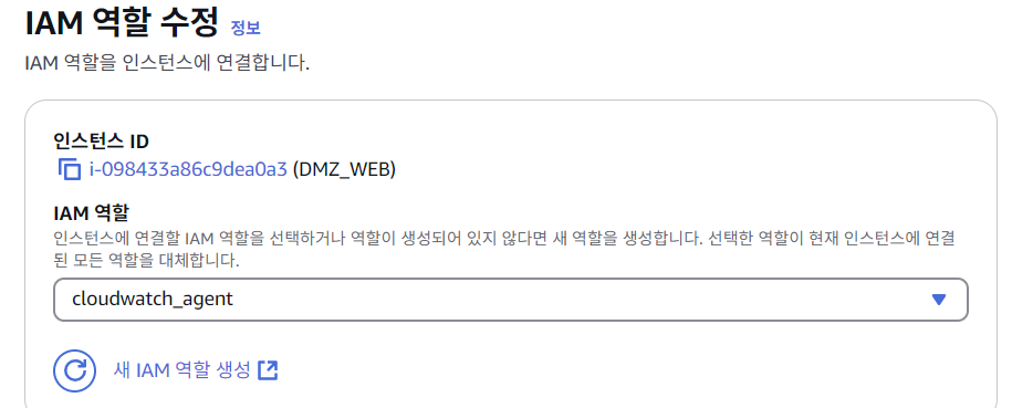 이를 통하여 ec2의 로그를 cloudwatch에 넣을 수 있는 권한이 ec2 자체에 생성