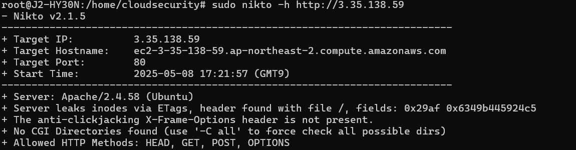 nikto는 웹 서버 취약점 스캐닝 도구로써, 다음의 기능을 수행한다.