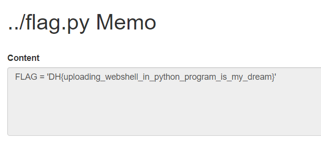 memo_text += f"[Notice] flag is {FLAG}\n"  # 전역변수에 flag추가되서 memo에서 확인가능