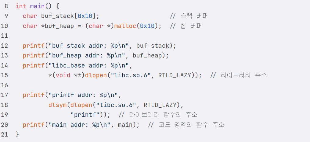 Memory Corruption : Format String Bug format string을 인자로 사용하는 함수 : scanf, fprintf, fscanf ... 등 => 포맷 스트링을 채울 값들을 레지스터나 스택에서 가져옴 그러나, 필요로 하는 인자의 개수 & 함수로 전달된 인자의 개수를 비교하는 검증이 존재x => 악의적으로 다수의 인자요청 - 레지스터나 스택을 읽거나 쓸 수 o :: FSB (format string bug) 포맷 스트링 - specifier 형식 지정자 : d 10진수정수 / s 문자열 / x 부호없는 16진수 / n 현재까지 사용된 문자열의 길이를 저장 / p void형 포인터 -width 최소 너비 지정 : 최소 너비 지정 -> 더 짧으면 공백문자를 패딩 : 예 ) %.5..