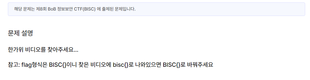 문제 파일을 다운받고 Hxd에 넣으니 ' FF D8 FF E0 xx xx 4A 46' 로 시작하는 jpg파일이 있다. jpg파일이므로 EOF인 FF D9를 찾아보니 54개나 존재하고 이 jpg파일 자체가 FF D9로 끝이 나지 않는다. 맨 처음에 존재하는 FF D9가 EOF가 되도록 파일을 추출해서 jpg파일로 저장해보니 파일이 손상되지 않고 그대로 유지된다. 그래서 맨 앞의 FF D9가 찐 FF D9라고 유추하여 그 다음 오프셋을 보았다. 익숙한 문자열 'ftyp'를 확인하여 다음 오프셋부터가 mp4파일임을 알 수 있다. 그 후 앞의 jpg파일을 잘라내고 .mp4로 변경해주면 다음의 video를 얻을 수 있다. 이 과정에서 mp4의 파일 시그니쳐에 맞게 ' 00 00 00 20 66 74 79 70' ..